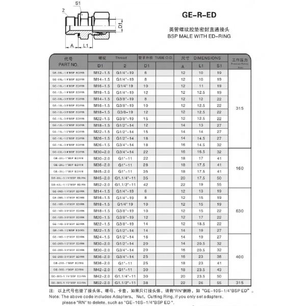 British Metric Pipe Thread Fittings Bite Type , Hydraulic Tube Fittings With ED Rin Images |